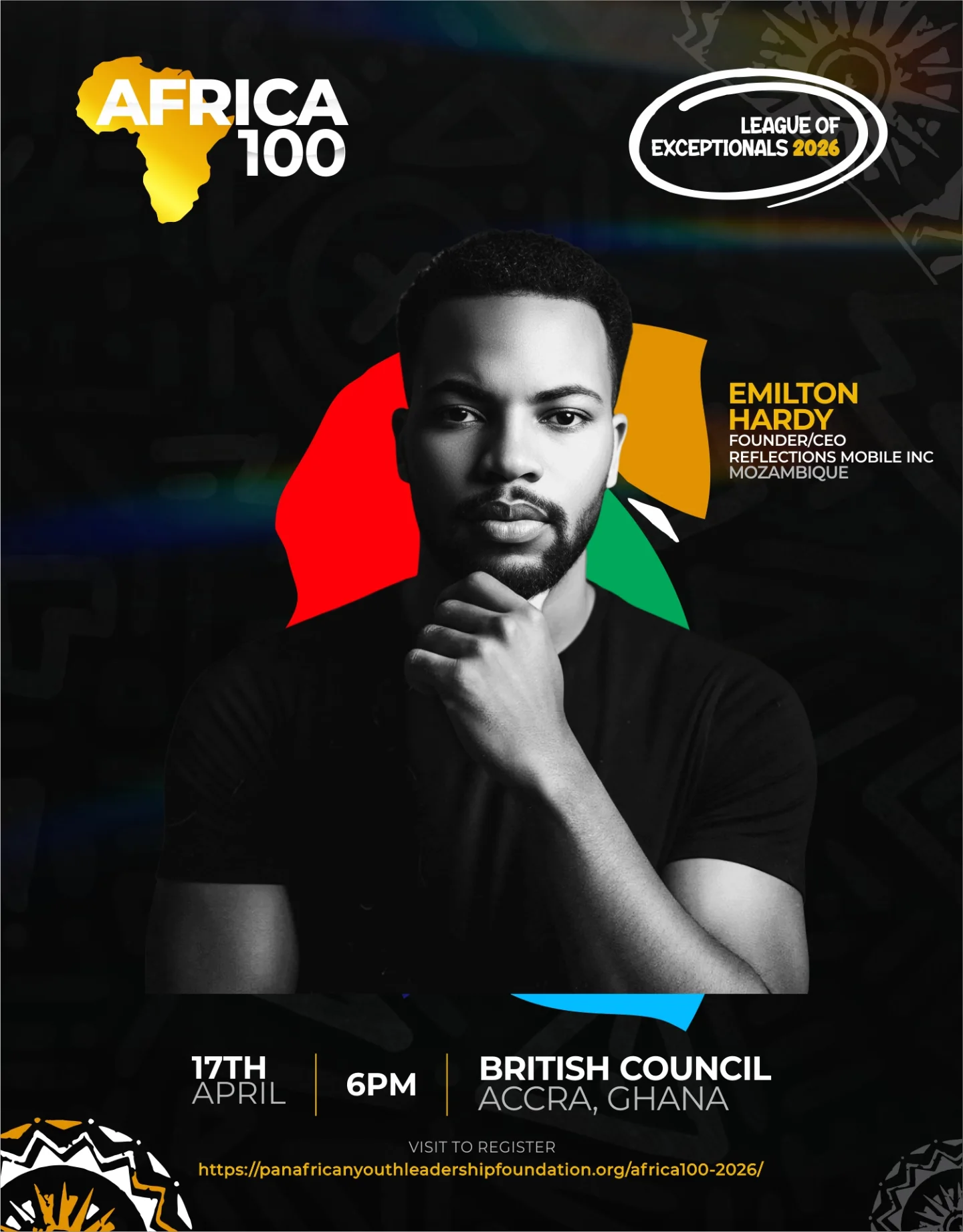 Emilton Hardy, foi oficialmente distinguido como um dos “100 Jovens Líderes Mais Influentes de África 2026”, no âmbito da prestigiada África100 League Of Exceptionals, uma iniciativa promovida pela Pan African Youth Leadership Organization.