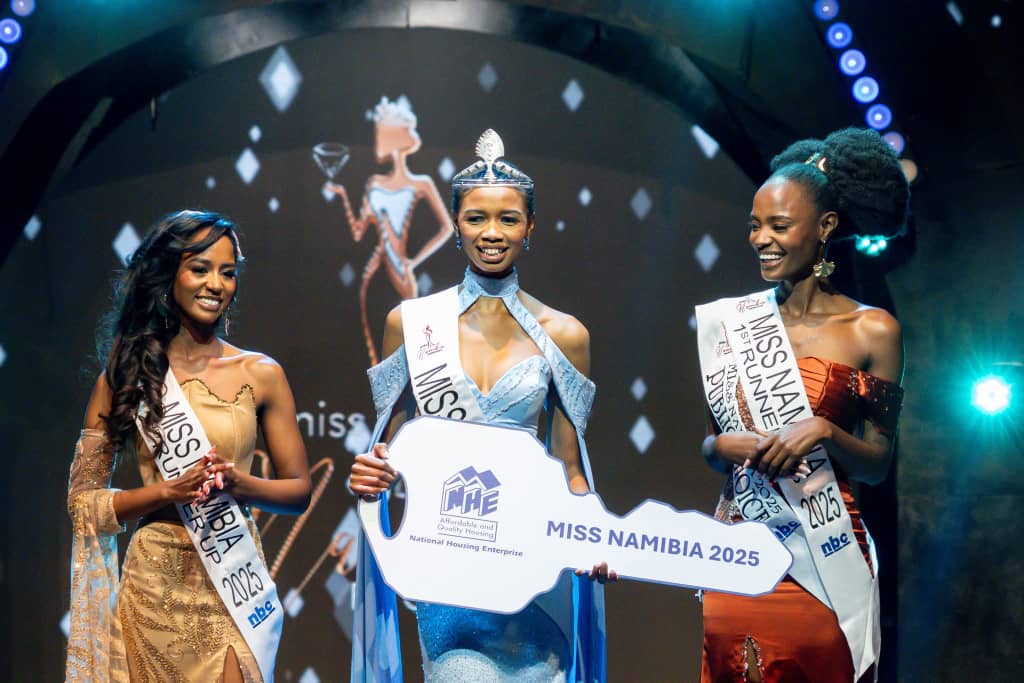 The swimwear—marking the second outfit of the night—infused iconic elements such as the Namibian flag, the Miss Namibia logo colors, and the copper tones that ToucyT herself was instrumental in redesigning in 2022. She reminisced about her bold proposal that year to feature only Miss Namibia logo and national flag color evening gowns, a move that has since become symbolic on the national pageant runway.