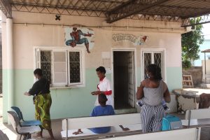 “Histórico. Na altura, eu não me encontrava cá. Apercebi-me de que, como podem ver, o banco de socorro está organizado e pintado; dispomos de pediatria e de uma sala onde os pacientes com tuberculose são assistidos (PNCT). Trata-se de uma associação de italianos, e estamos a lidar directamente com a Senhora Luana, que conheci há pouco tempo. Pelo histórico, e pelas imagens que pude ver, ela reabilitou o banco de socorro, que antes dispunha de apenas um compartimento e foi ampliado; a pediatria e o PNCT também foram alvo de intervenção, tendo conseguido separar o atendimento para adultos do atendimento para crianças. Falaram-me da Luana, e eu já a conhecia, e creio que foi exactamente assim. Ela, com a generosidade que sempre a caracterizou, encarregou-se do telhado, da pintura interna e externa, do tratamento do pavimento (o chão foi envernizado) e está a finalizar a pintura externa, que praticamente já está a terminar.