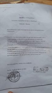 Uma Nota comunitária, apresentado por João Adoi à Moz24h, datada de 4 de agosto de 2015, dirigida ao Conselho Municipal de Pemba e ao Conselho Executivo Provincial de Cabo Delgado, já alertava para o perigo iminente. Na nota, assinada pelo secretário do bairro, a população denunciava uma situação de erosão associada a uma drenagem mal conduzida junto a uma infraestrutura industrial, pedindo intervenção urgente antes da chegada de novas chuvas. O documento foi entregue. Alerta dado, denunciava a expansão das crateras mas que pelos factos hoje apresentados, medidas necessárias não foram tomadas, fizeram ‘ ouvidos de mercador’, cegos e mudos! Das instituições de direito, a resposta nunca chegou mas, sim da própria cratera, cansada de pedir por uma intervenção cabal!