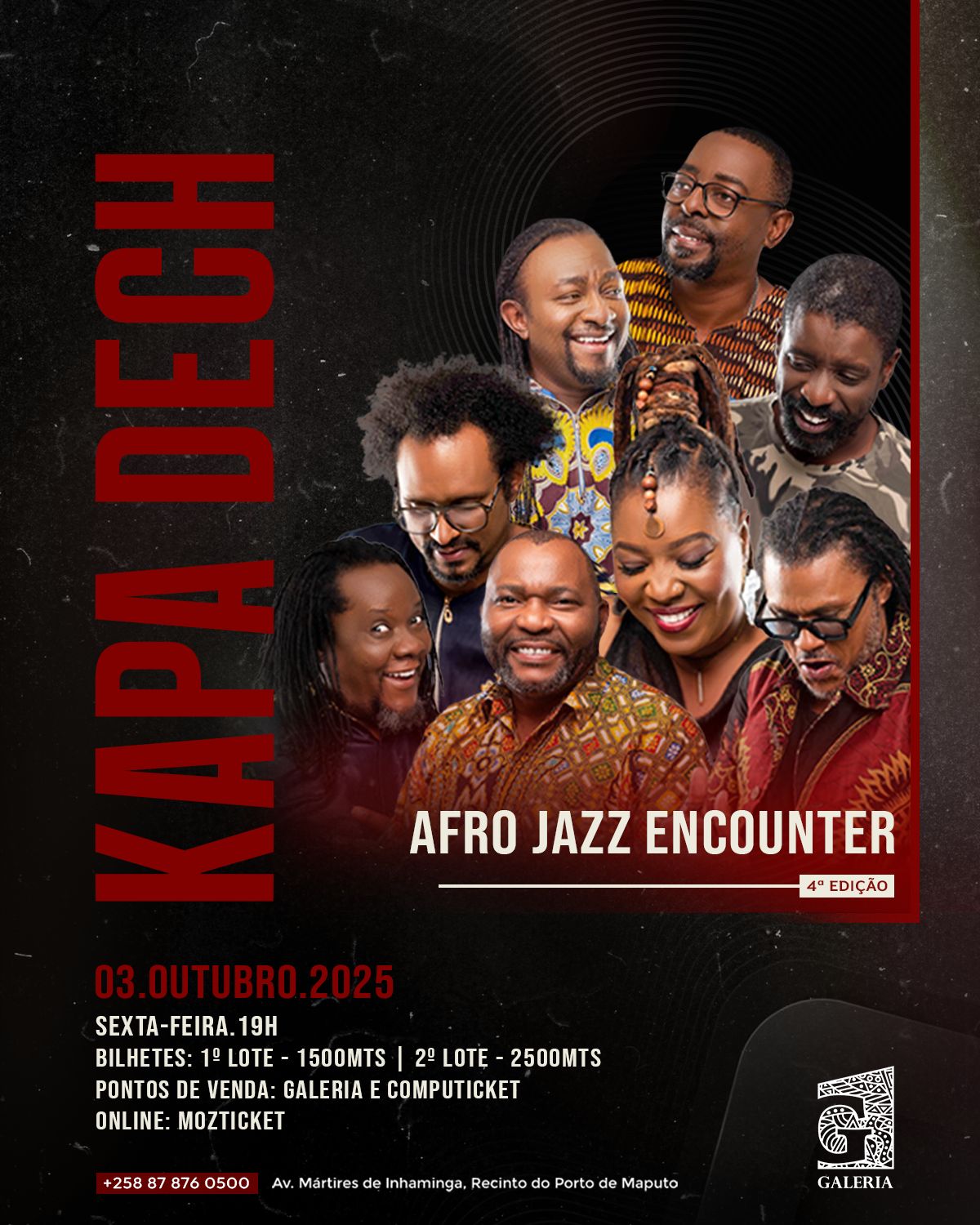 Com um trajecto que tem Moçambique entre a denúncia e o apelo, KAPA DECH, é, sem dúvidas, o sinónimo de pertença colectiva. E porque o Afro Jazz Encounter, é um exercício que interpela através da arte, o Palco da Galeria, no dia 03 de Outubro, na sua 4ª. Edição, receberá os KAPA DECH para um acto não apenas de celebração, mas também, de revisitação. As portas abrem às 18h