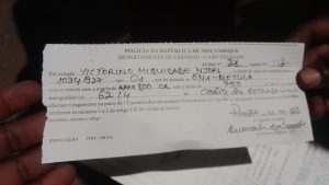 Por volta das 19 horas do dia 2 de abril, um agente da Polícia de Trânsito, no posto de controlo de Metula, na cidade de Pemba, aplicou uma multa de 750 meticais a um chapeiro da rota Pemba–Chiúre, alegadamente por uma das luzes de stop da viatura não estar a funcionar.