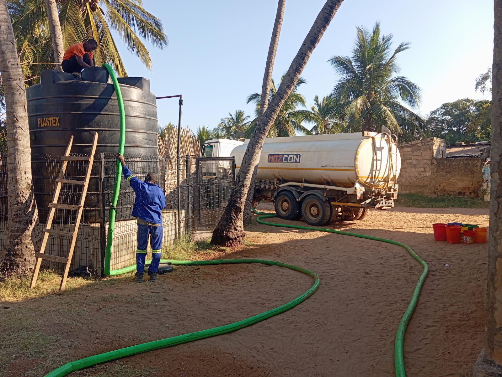 Fonte de água que nunca jorrou água apesar dos 18 milhões de meticais provenientes da dita responsabilidade social da multinacional francesa supostamente investidos no tanque plástico conforme ilustrado na imagem. Depois de ontem, segundo fontes, os alegados implementadores não terem enchido o mesmo para mostrar a um grupo de jornalistas nacionais e internacionais que ontem andaram por aquela zona do bairro de Paquite na cidade de Pemba, hoje muito cedo, os implementadores do projeto contrataram um camião cisterna para de emergência encher o tanque para mostrar a equipe de jornalistas que ira deslocar se ao local para ver as ditas obras-responsabilidade social! (Moz24h)