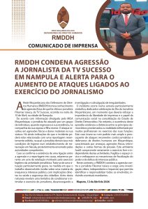 RMDDH CONDENA AGRESSÃO A JORNALISTA DA TV SUCESSO EM NAMPULA E ALERTA PARA O AUMENTO DE ATAQUES LIGADOS AO EXERCÍCIO DO JORNALISMO